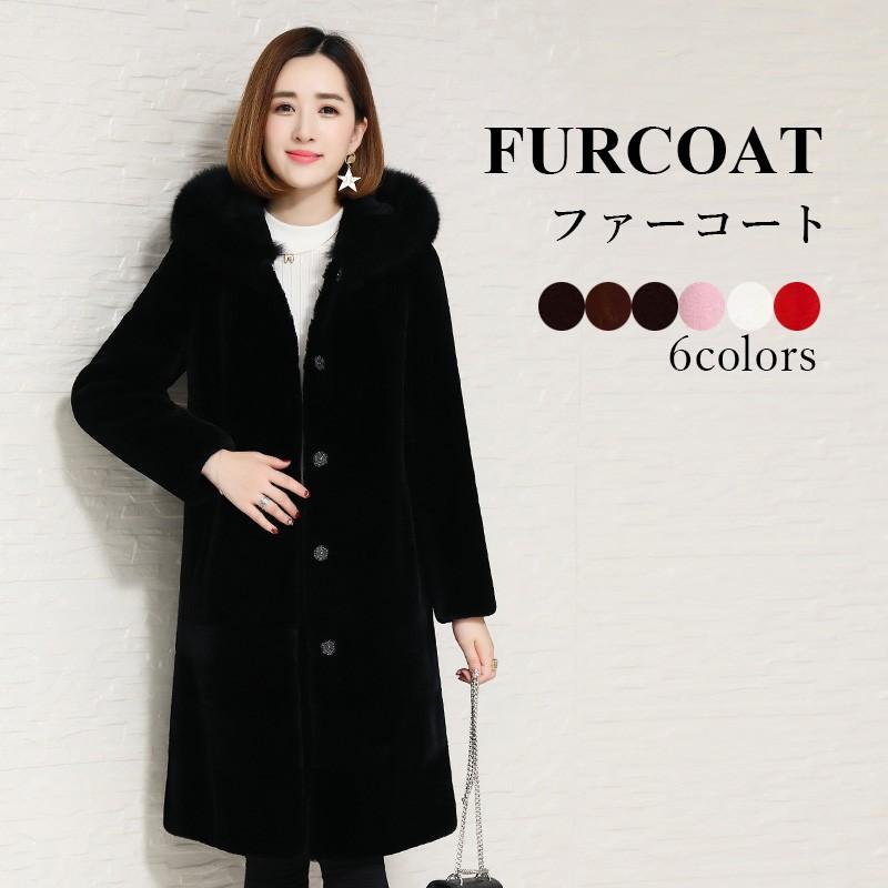 毛皮コート レディース ロング ファーコート フード付き ムートンコート アウター もこもこ 厚手 防寒 冬服 おしゃれ 上品 大きサイズ 白 黒 赤 キャメル 6色 Convejacket Convenience ヤフー店 通販 Yahoo ショッピング